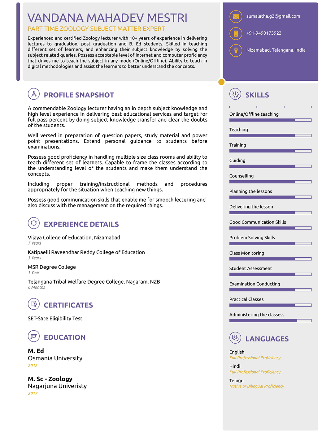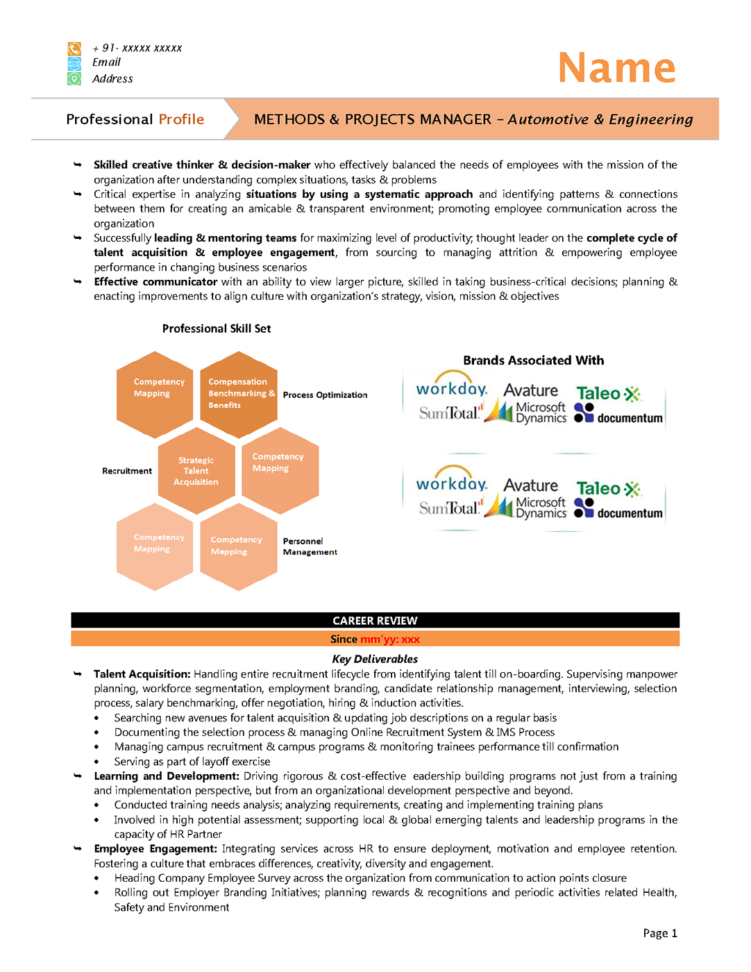 - Highlighted with high ranking Keywords so that Recruiters can easily find you